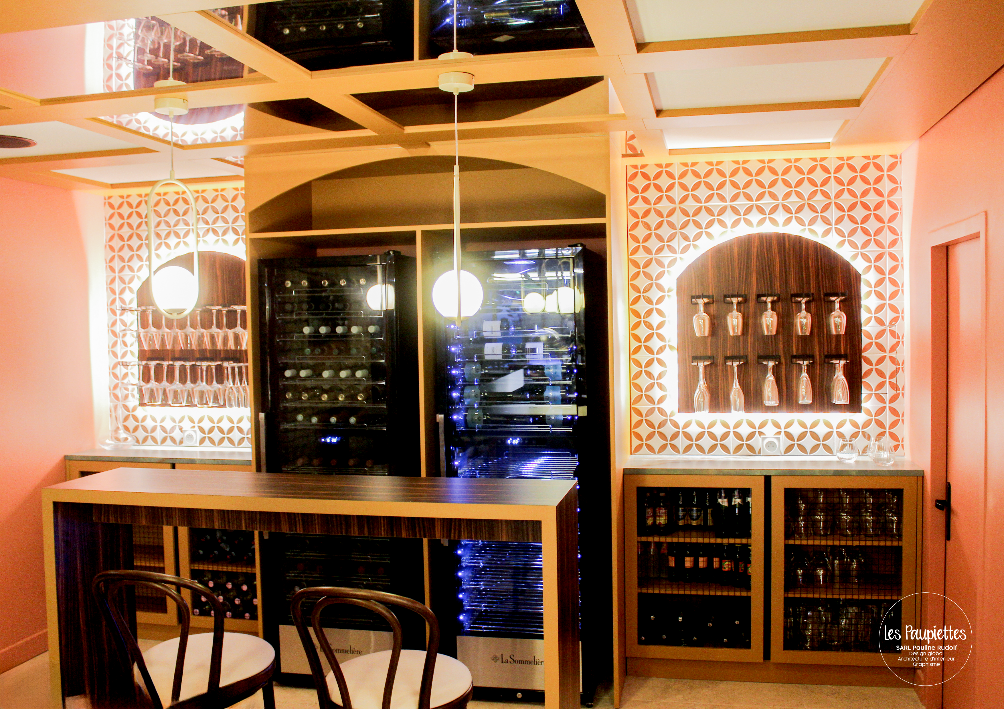 - Caves à vins et îlot de présentoirs sur-mesure