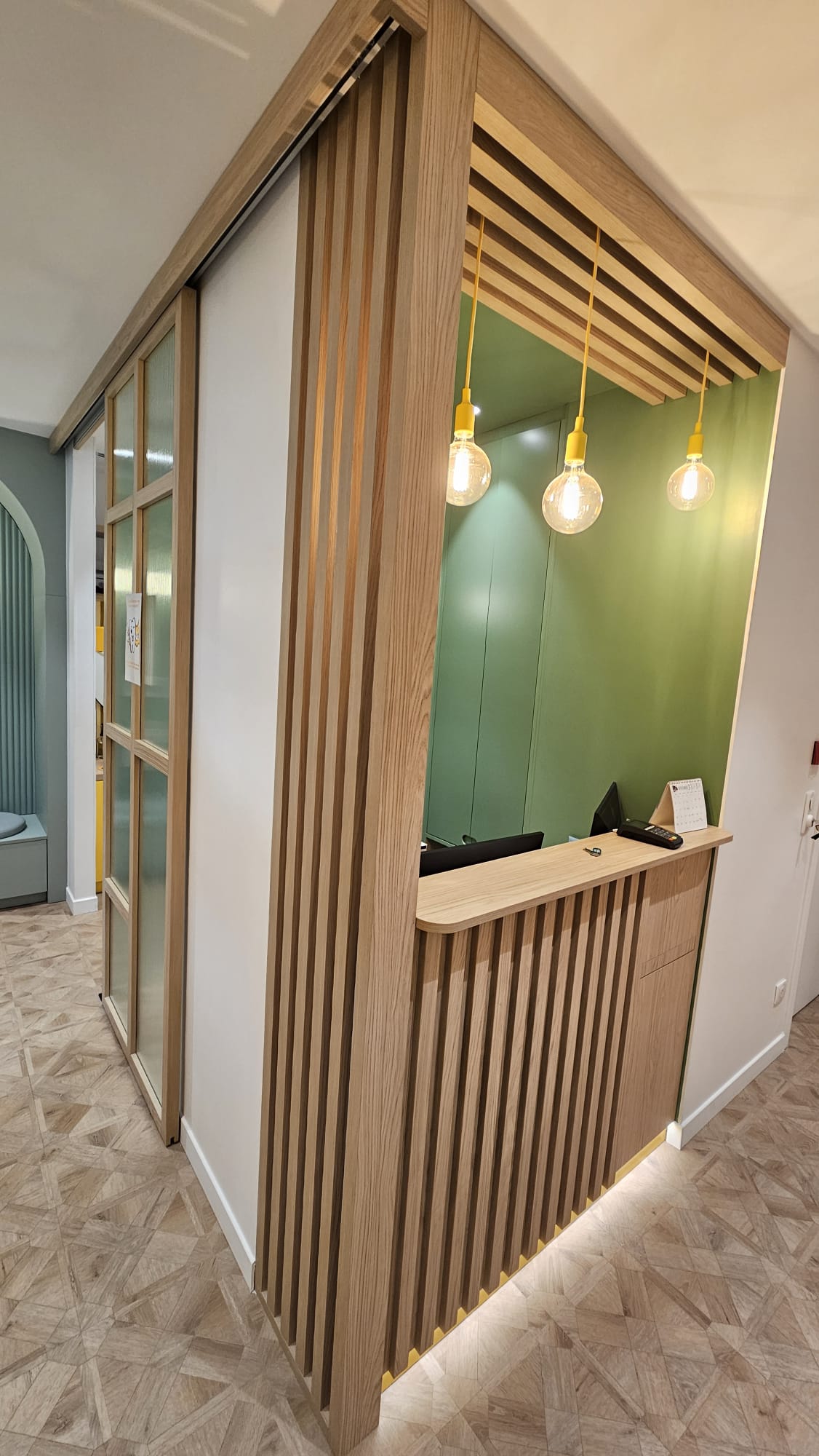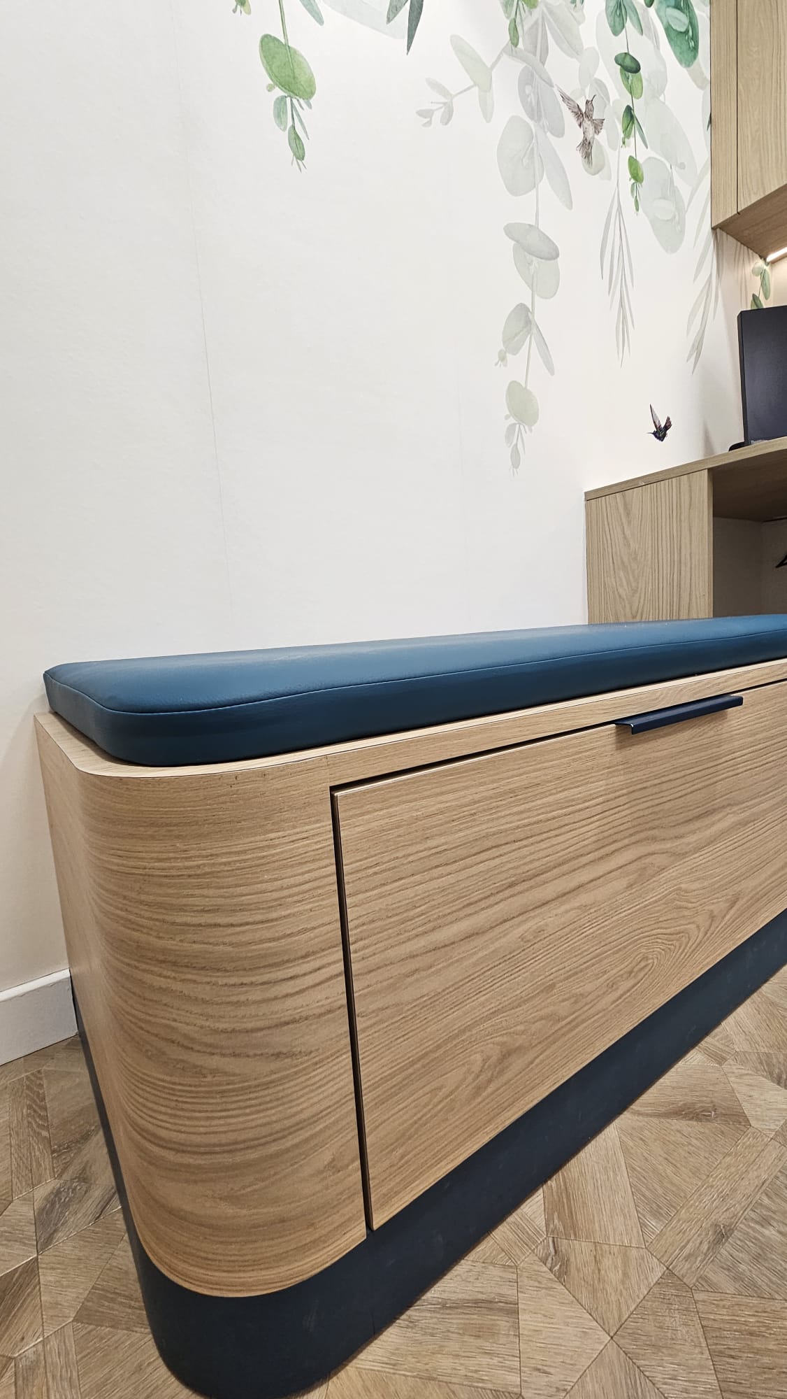 Encore un agencement de cabinet d’orthodontie particulièrement designé dont nous avons assuré la fabrication et la pose, cette fois sur la commune de St Laurent de Mure (Rhône).